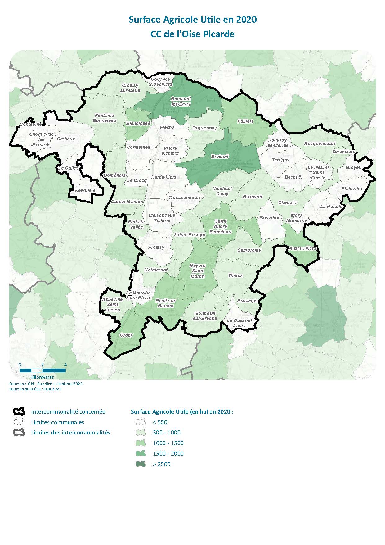 Importance et répartition des surface agricoles sur le territoire du PETR en 2021