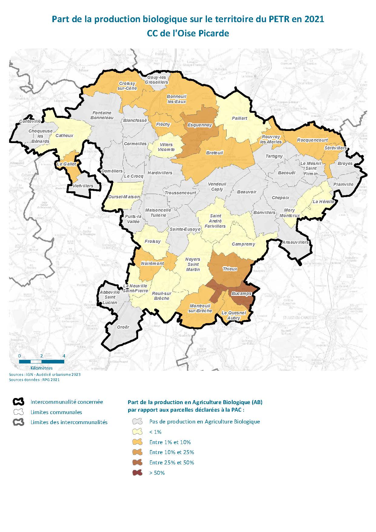 CARTES - Part de la production biologique sur le territoire du PETR en 2021