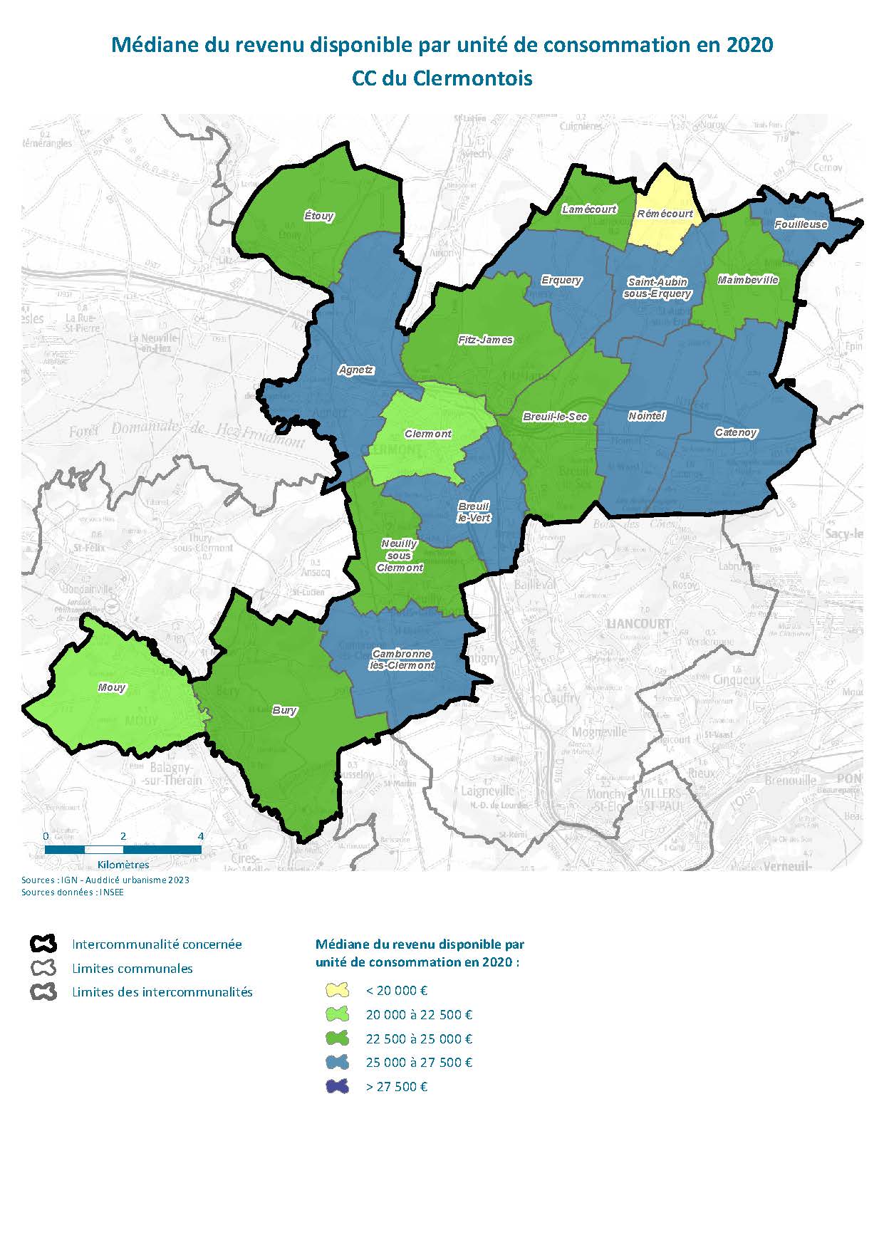 - Des ménages dont les revenus médians se situent autour de la médiane nationale