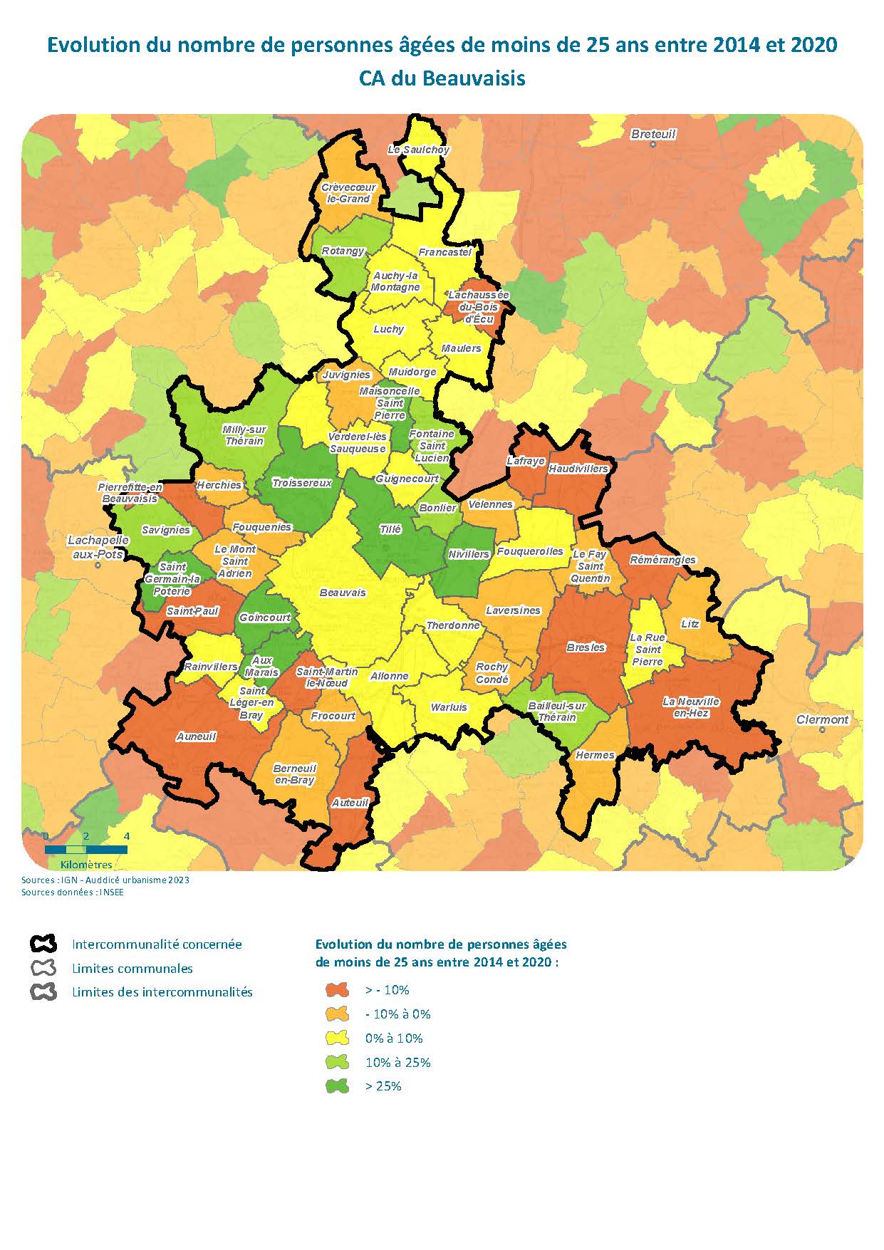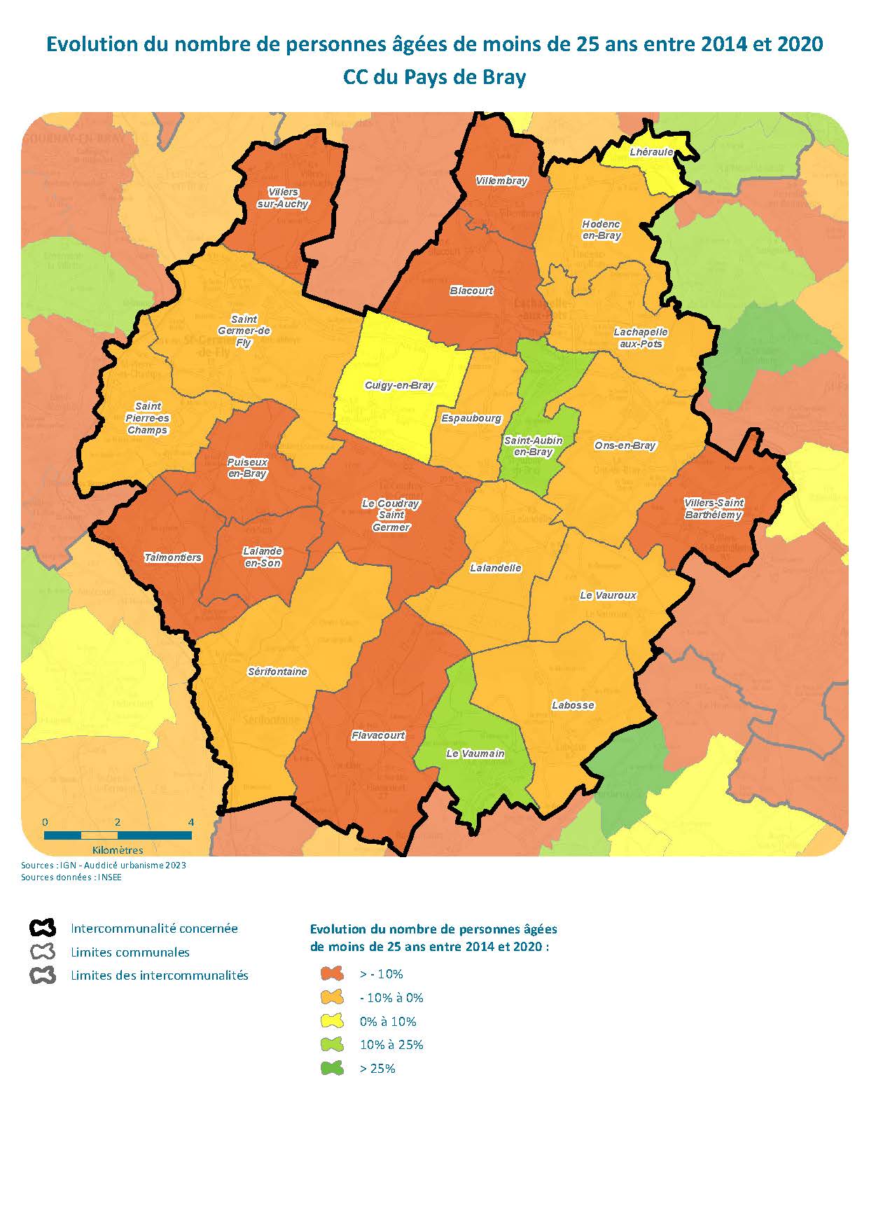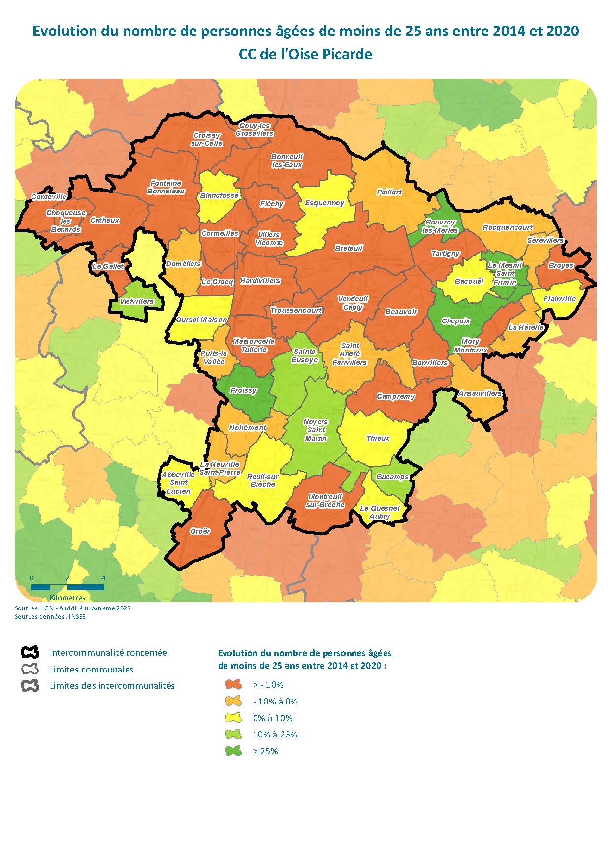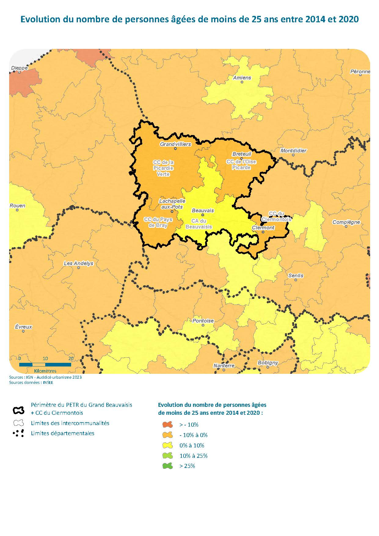 CARTES - Evolution du nombre de personnes âgées de moins de 25 ans entre 2014-2020