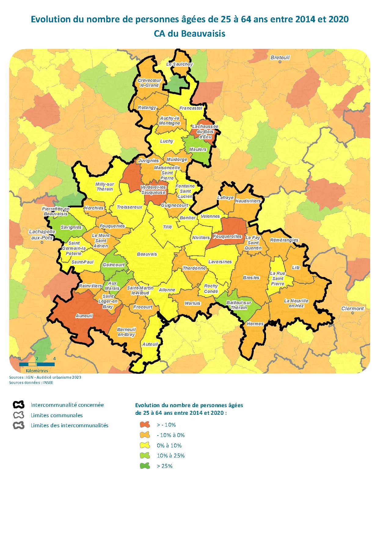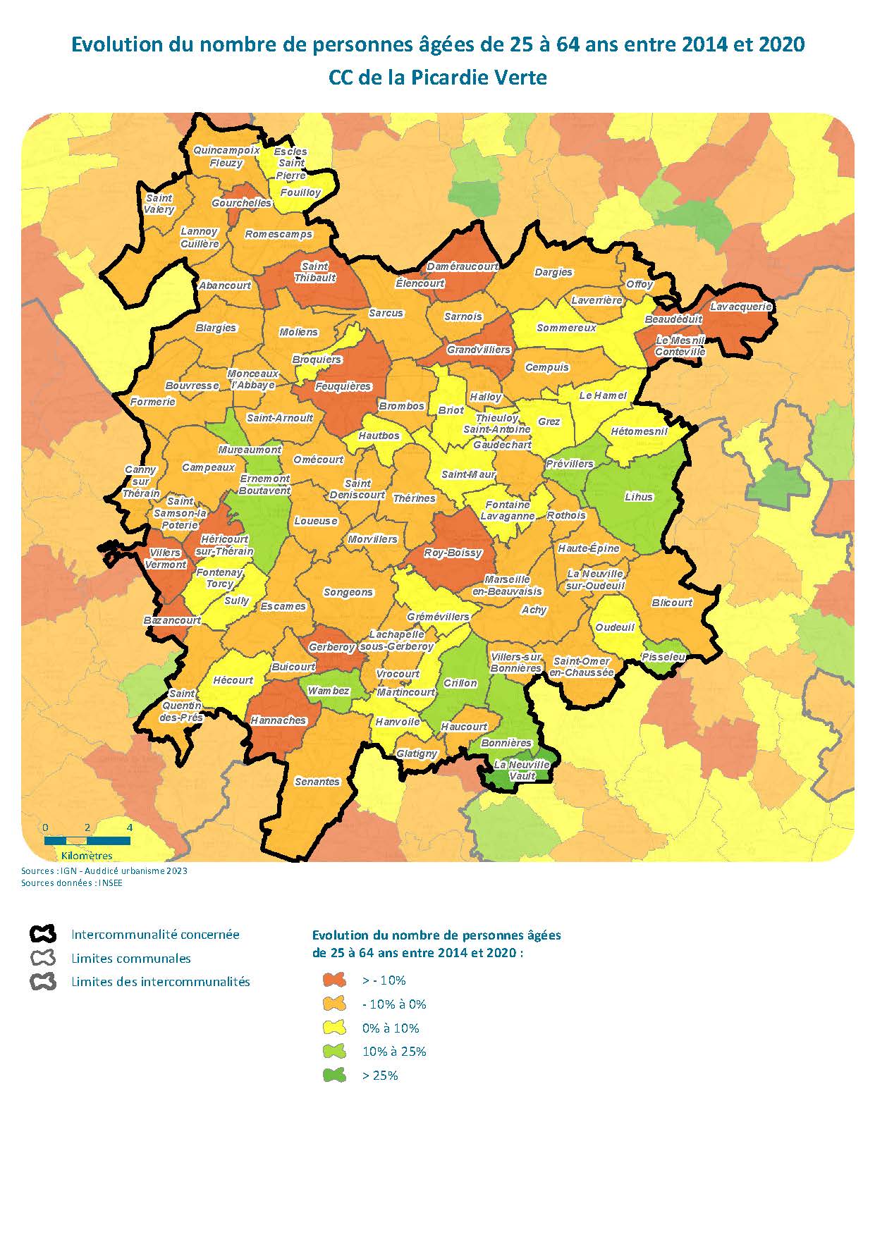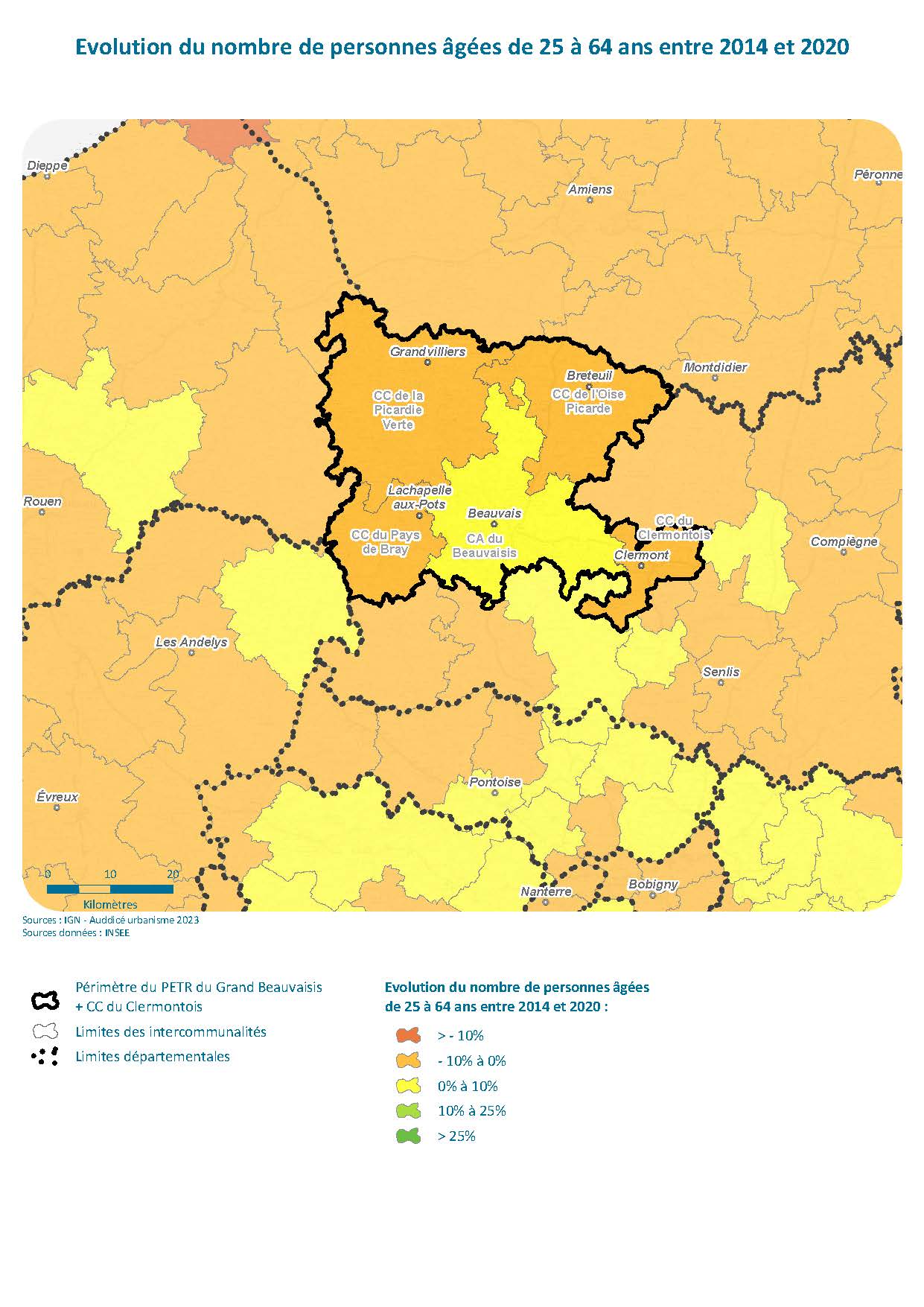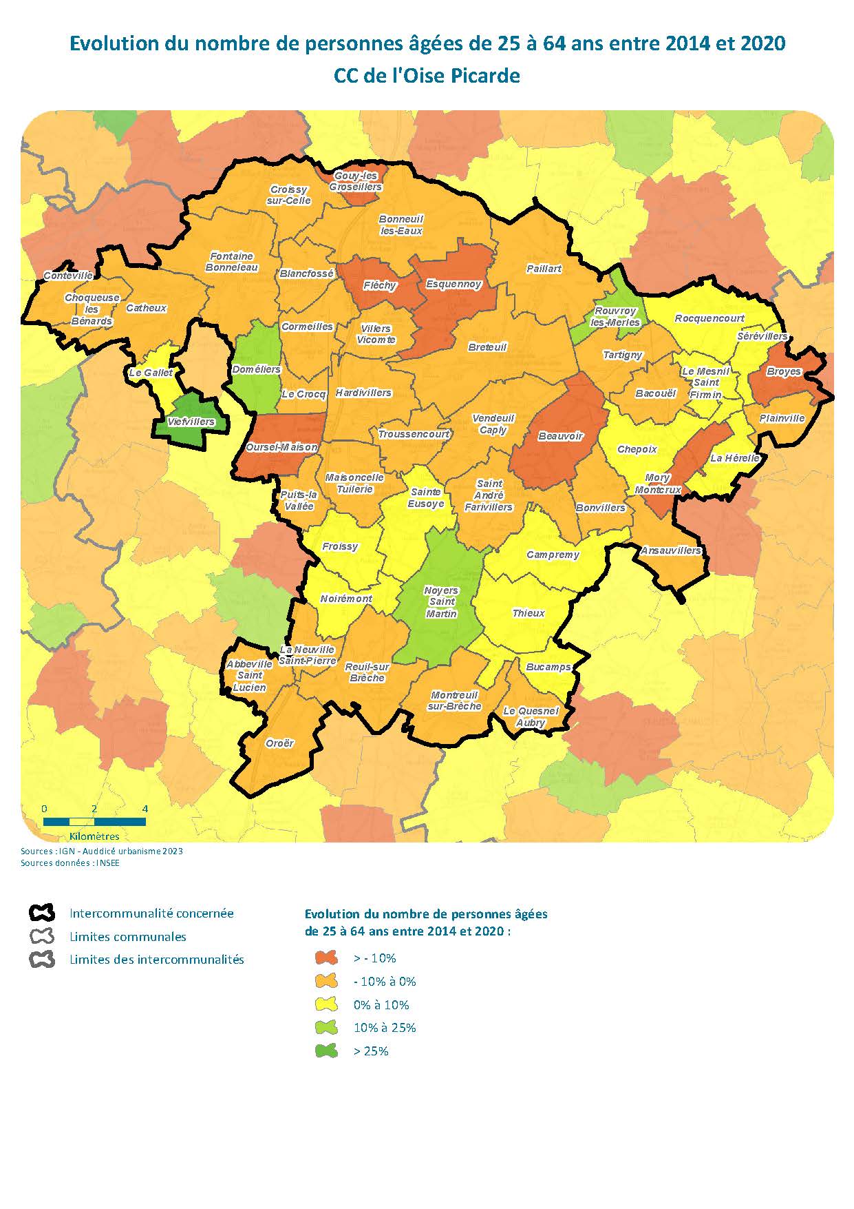 CARTES - Evolution du nombre de personnes âgées de 25-64 ans entre 2014-2020