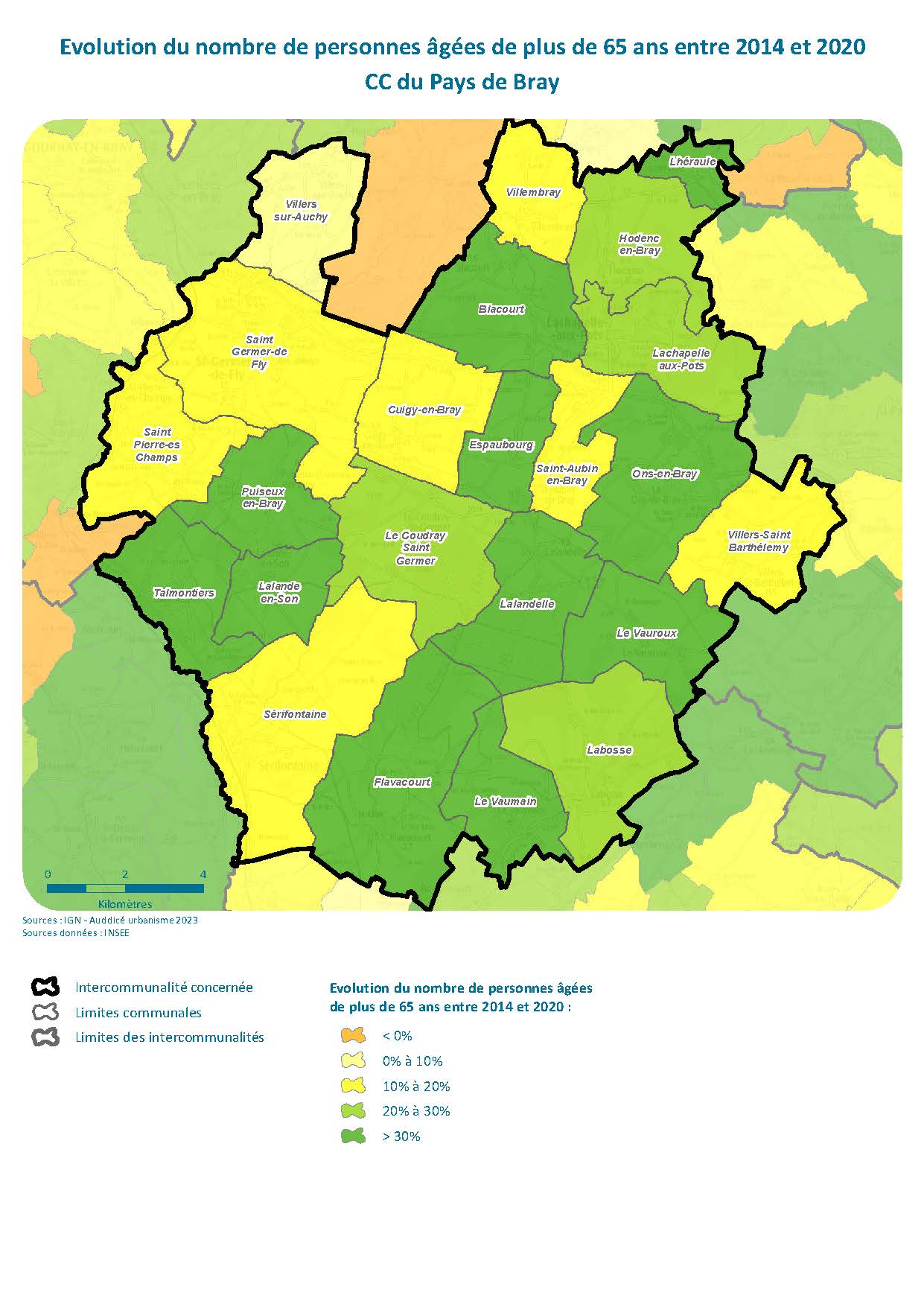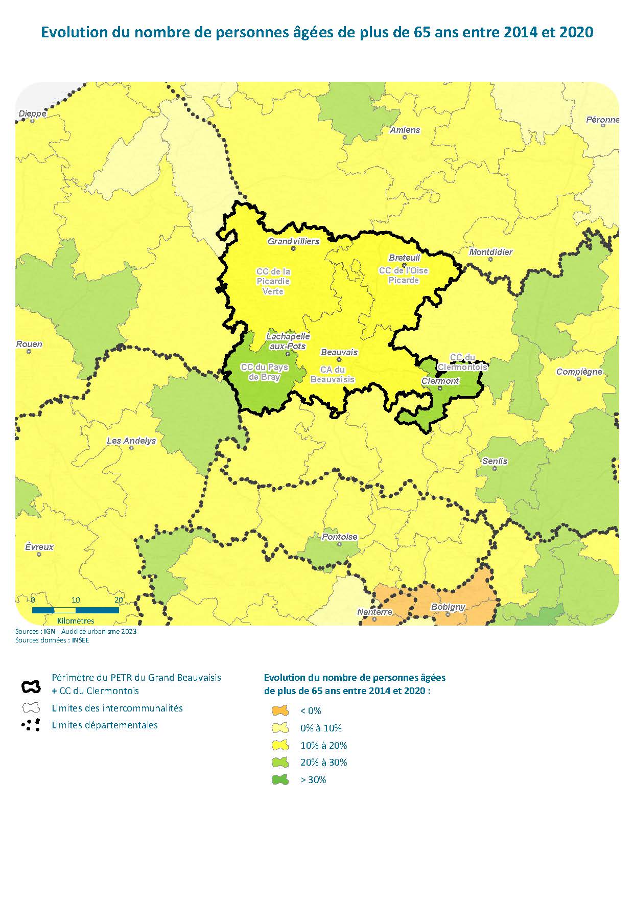 CARTES - Evolution du nombre de personnes âgées de plus de 65 ans entre 2014-2020