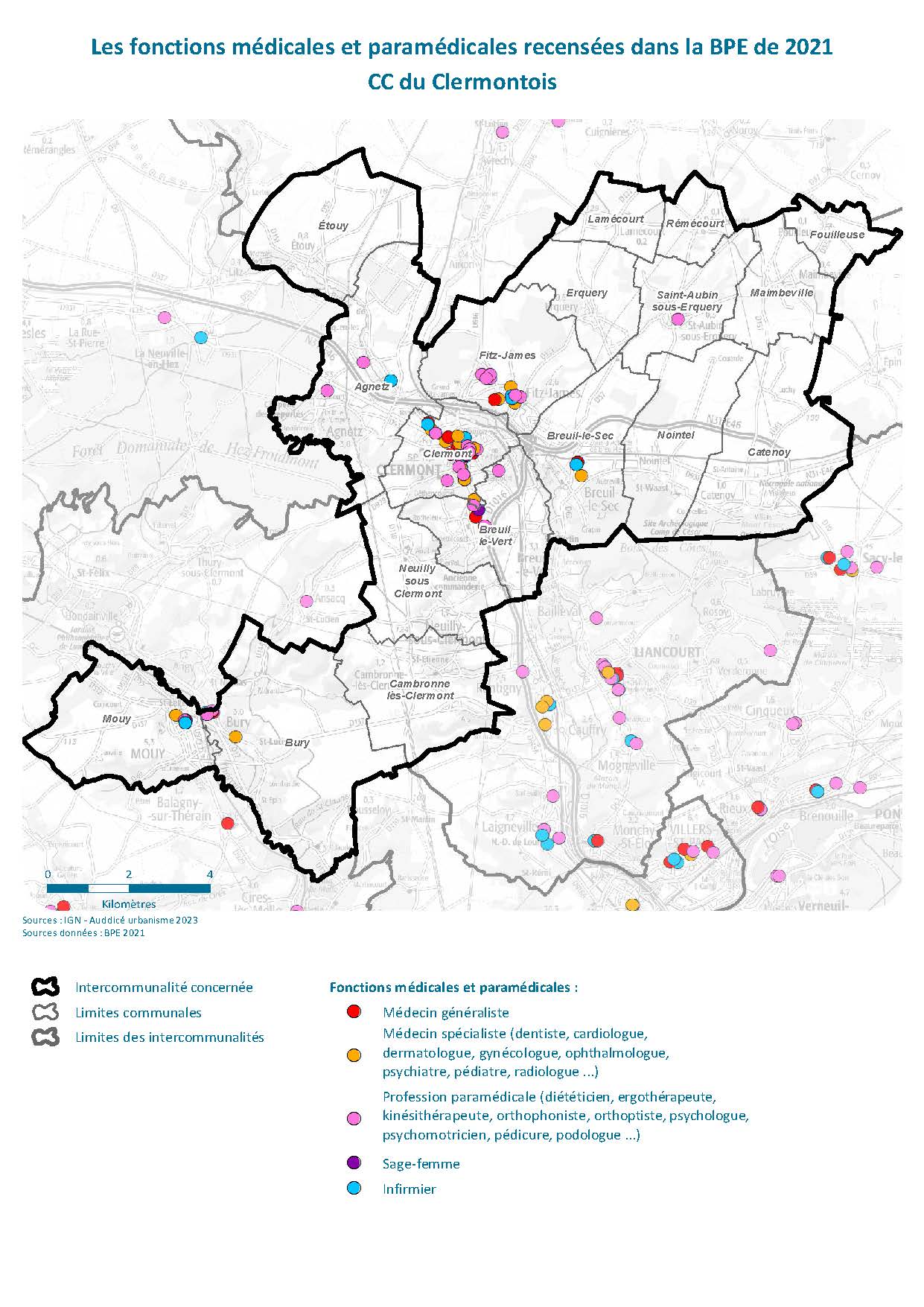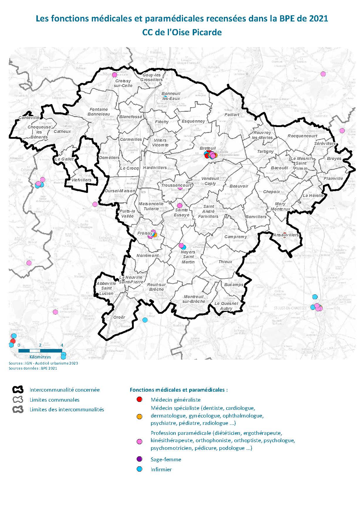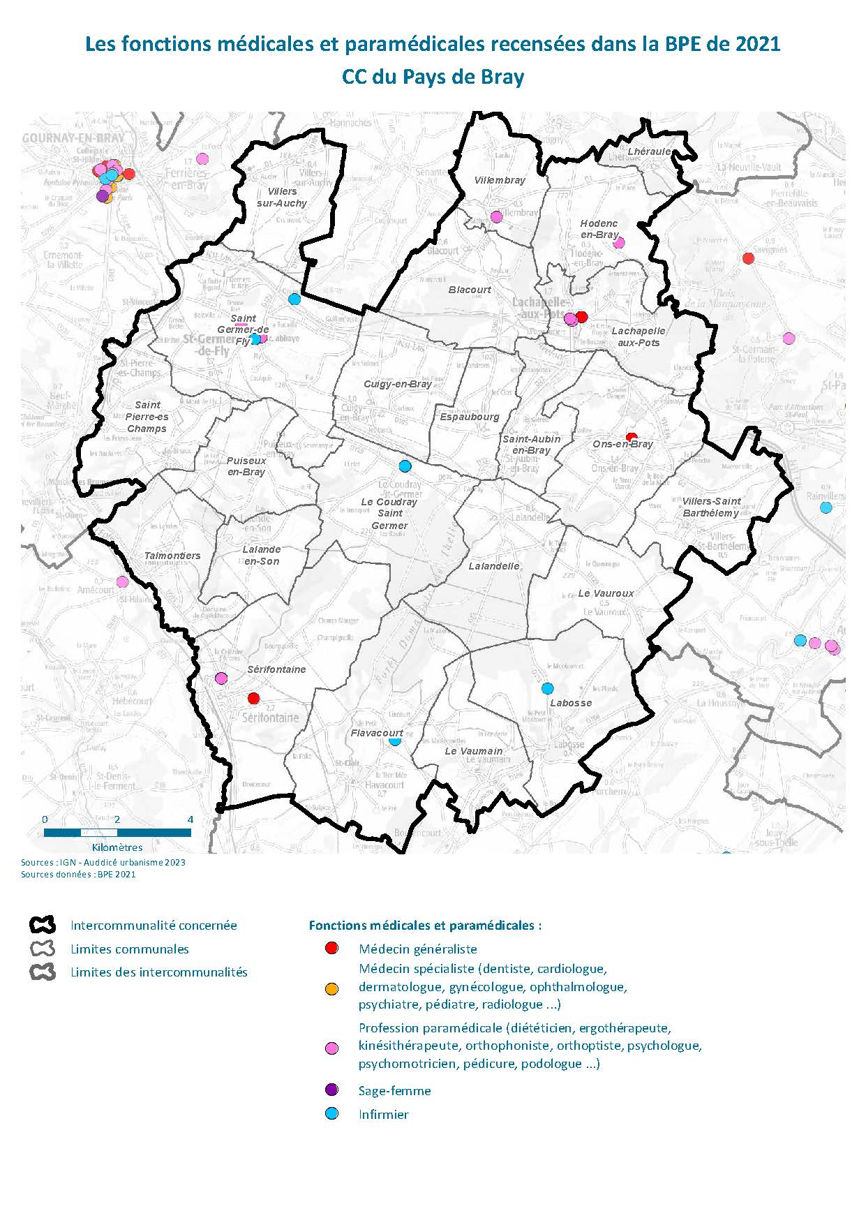 CARTES - Les fonctions médicales et paramédicales recensées dans la BPE de 2021