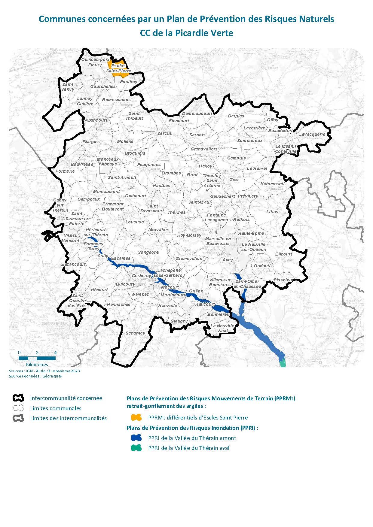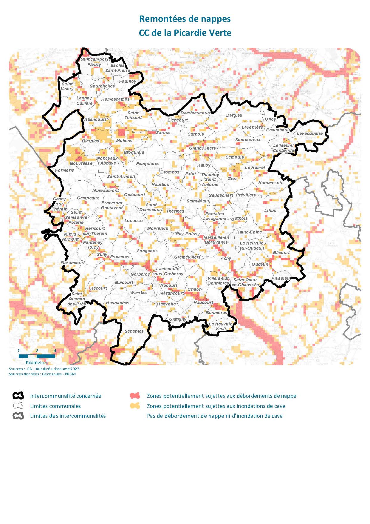 Un risque d’inondation par remontée de nappes phréatiques plus important sur le sud du territoire dans les vallées de l’Avelon et du Thérain